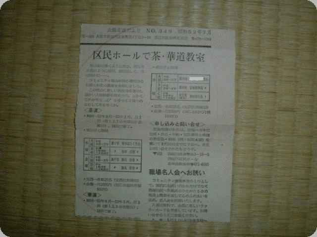 昭和52年9月から53年3月まで、区民ホールで華道教室の講師をしていた。その時の「大阪市政だより NO.349 昭和52年7月」に掲載されたものである。