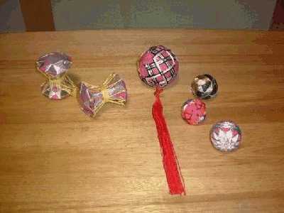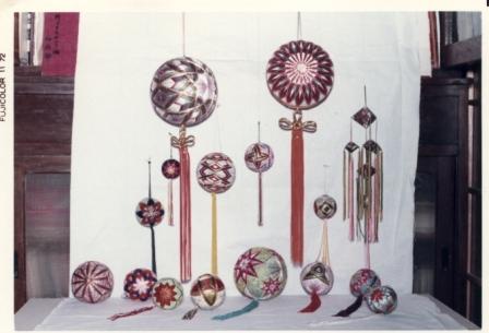 交通安全週間には小学校のPTAのお母さん方を相手に御殿毬作りの講師を勤めたこともあります。毬は、交通安全を願って近くの国道を走る運転手さんに